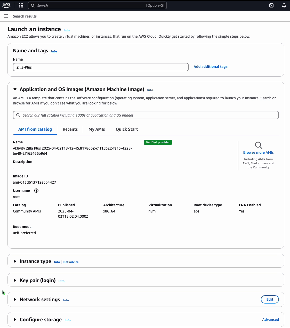 Select the Zilla Plus AMI